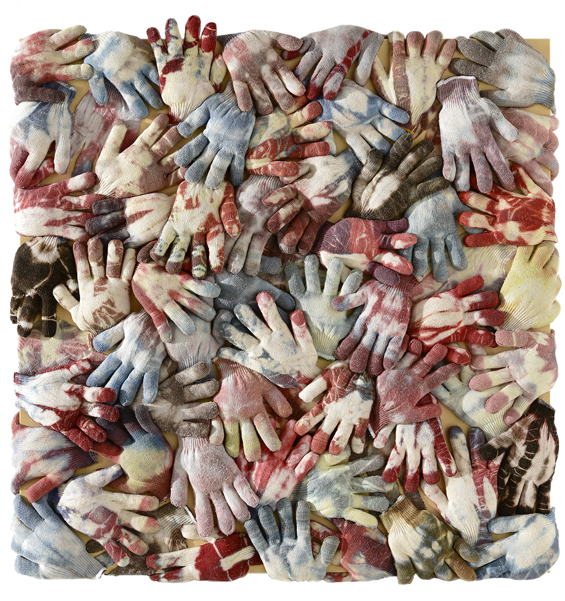 MIXED TECHNIQUE&MIXED MEDIA, Tie-DYED COTTON GLOVES on CANVAS, 2021